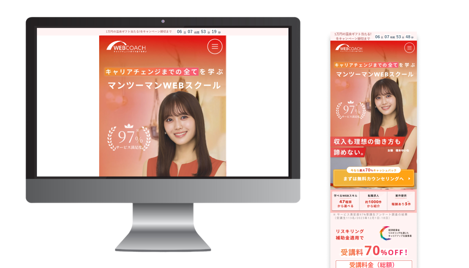 キャリアチェンジまでの全て を学び理想の”収入と働き方”、どちらも叶えるためのマンツーマンWEBスクール です。